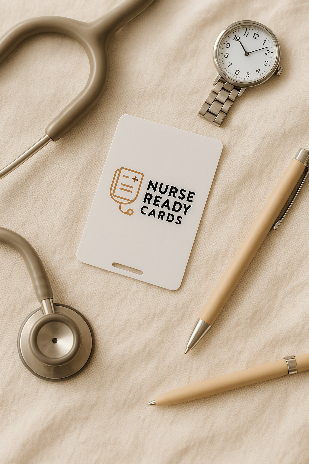 Founded by a nursing student, Nurse Ready Cards was developed to fill a gap — reliable, compact clinical references that make sense on the floor. Each card is designed for quick use under pressure, with content that’s clear, relevant, and straight to the point.