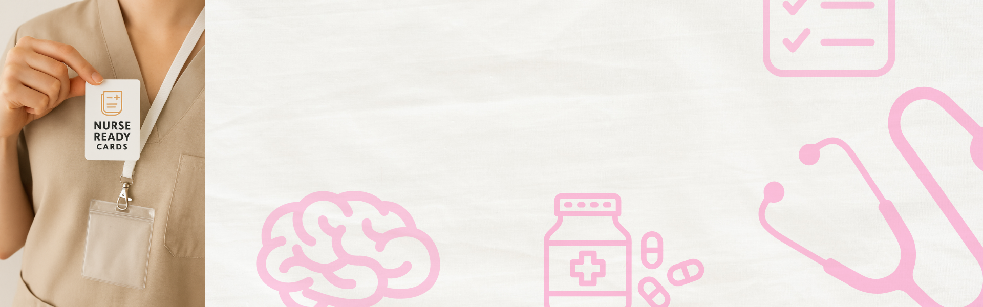 Nurse Ready Cards are pocket-sized, waterproof reference cards designed to help nurses and students with quick clinical information on the go.